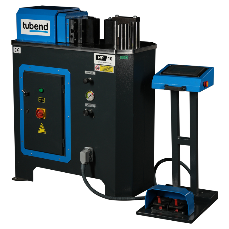 Hydrauliczne prasy poziome Tubend serii HP umożliwiają łatwe wykonywanie wszelkich operacji, takich jak gięcie, cięcie, dziurkowanie, kształtowanie rur, profili kwadratowych, blach przy użyciu standardowych lub specjalnych narzędzi.
